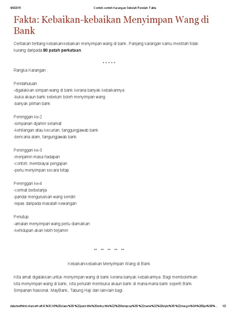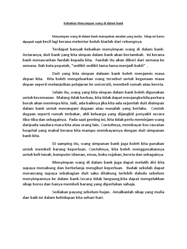 Contoh Contoh Karangan Sekolah Rendah Fakta Kebaikan Menyimpan Wang Di Banl Pdf